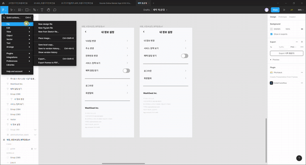 우선 가장 먼저 그리려는 화면의 디바이스 컴포넌트를 불러와서, 화면 UI를 그릴 준비를 합니다. 일반적으로 PPT로 작성하는 스토리보드는 화면명, 화면 경로, 화면 ID 등을 적지만 피그마에서 화면명은 프레임명으로 대체하고, 화면의 대한 간략한 설명과 경로에 대해 우측 디스크립션 영역에 내용을 입력해주면 됩니다.
