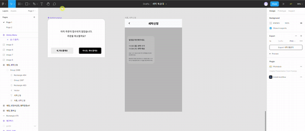 하지만 이럴 때 피그마를 활용하면, 스크롤 길이가 길어져서 화면을 분리해야 하는 PPT와는 달리 원하는 만큼 늘려서 작업할 수 있습니다. 한 화면에 보여주어야 하는 요소들을 모두 그려낼 수 있기 때문에 기획자뿐만 아니라 스토리보드를 읽고 작업해야 하는 디자이너, 개발자, QA 모두가 전체 내용을 한눈에 파악하기 수월해집니다.