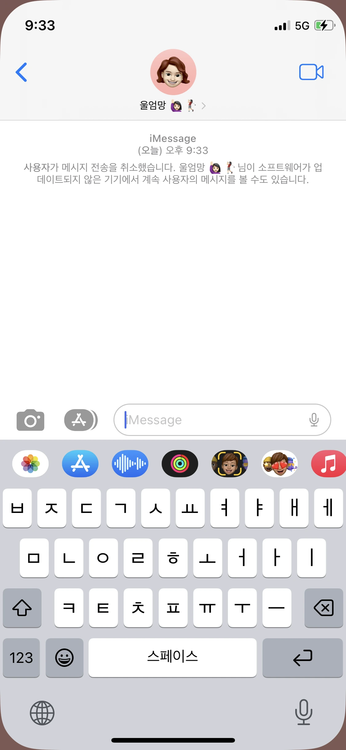 이미 전송한 메시지를 취소할 수도 있습니다. 편집과 동일하게 imessage를 전송한 내역을 꾹 누르면 ‘전송 취소’ 버튼을 누르면 취소됩니다. 전송 후 2분 이내에만 가능하고 동일한 소프트웨어 버전에서만 기능이 동일하게 동작하는 점을 참고해주세요.