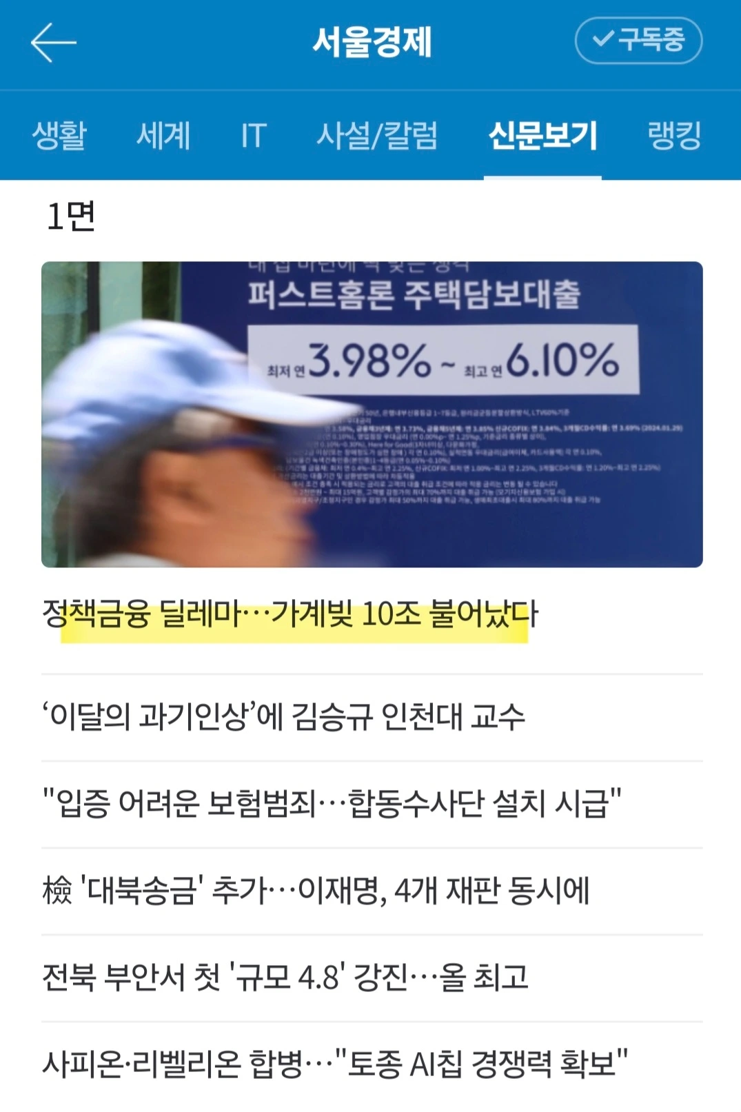 [하반기 전망] 기준금리 인하까지 이뤄질 경우 가계부채 규모가 더욱 확대될 것이라는 전망. 이미 ‘대출 갈아타기’ 활성화로 은행권의 금리 경쟁이 치열해지면서 시장금리가 하락하고 있다는 점도 위험 요인 중 하나. 올해 4월 주담대 금리는 3.93%로 2022년 5월(3.90%) 이후 1년 11개월 만에 가장 낮은 상황.