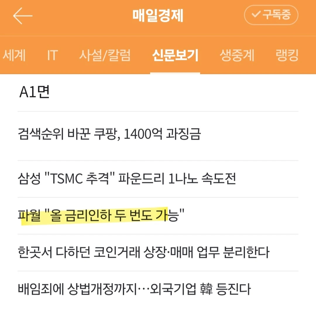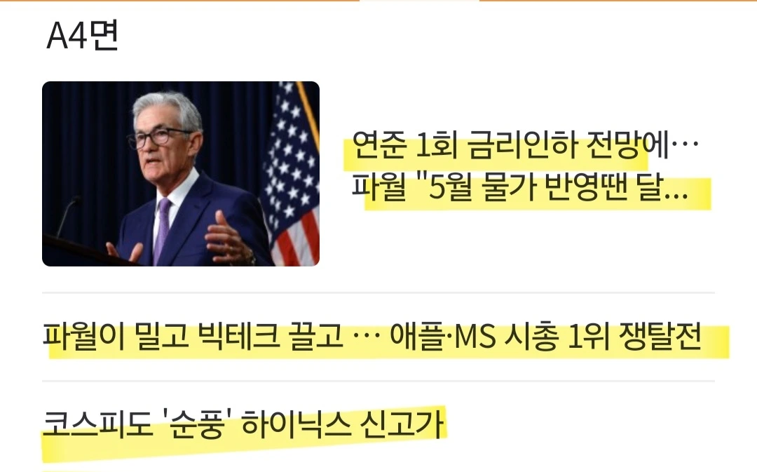 [요약] 미국 중앙은행 격인 연방준비제도(Fed·연준)가 12일(현지시간) 점도표를 통해 올해 기준금리를 한 차례 인하할 것임을 시사. 지난 3월 '3회 인하' 전망보다 크게 후퇴한 것이었지만 제롬 파월 의장이 "점도표는 고정돼 있지 않고, 올해 두 차례 인하도 가능하다"라고 설명하면서 분위기가 반전 뉴욕 증시는 물론 한국 증시도 오름세