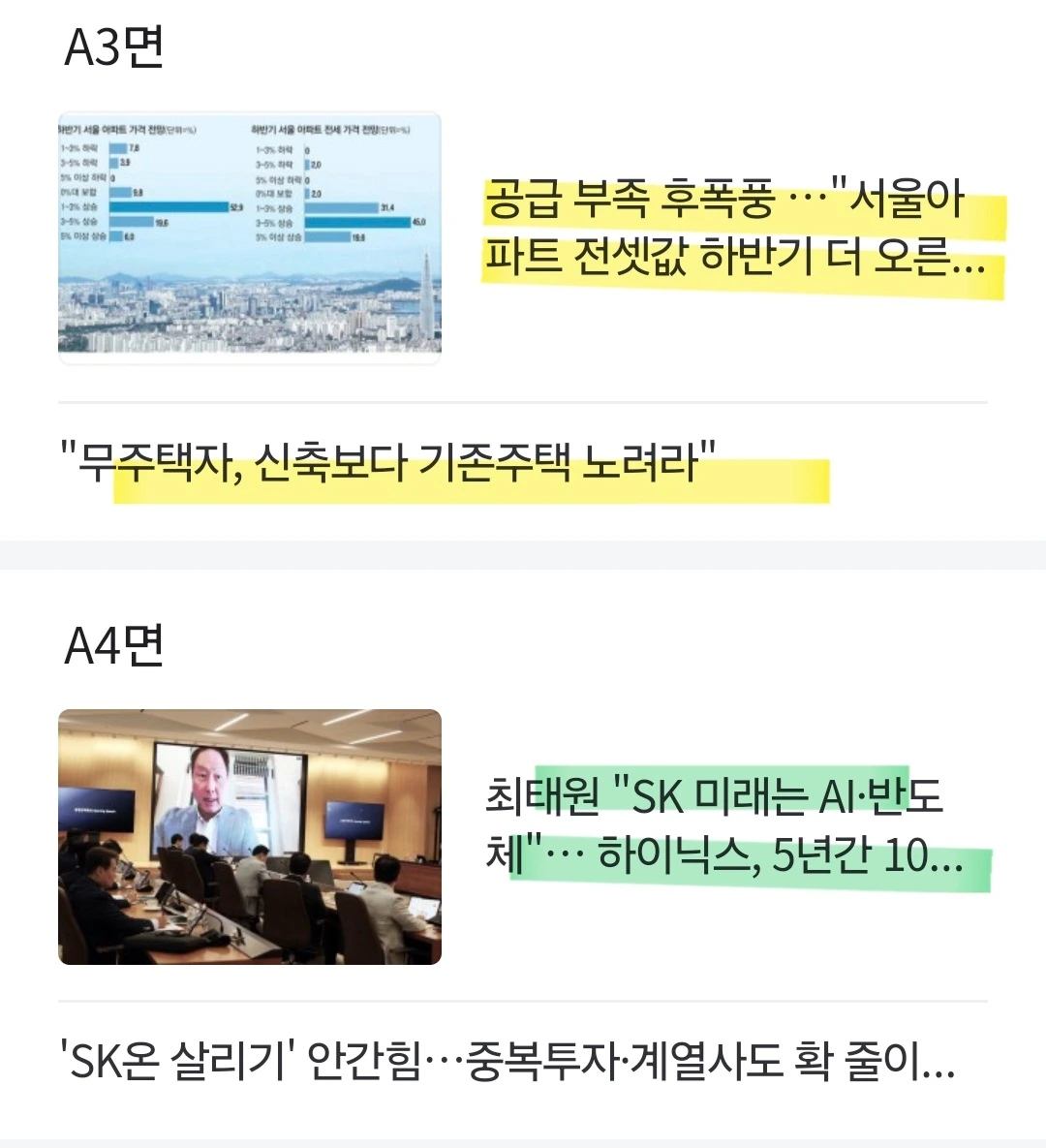 [요약] 부동산전문가 51명 설문. 신축 아파트 공급 부족으로 서울 아파트 가격 상승이 올해를 넘겨서도 계속될 것이라는 전망. 올해 하반기 서울 아파트 전셋값이 매매가보다 더 큰 폭으로 상승할 것이라고 전망. 입주 물량 부족 현상은 당장 매매시장보다 전세시장에 더 직격탄이 될 수 있기 때문 + 7월이 되면 임대차 2법 (계약갱신청구권·전월세상한제) 시행 4년을 맞기 때문에 집주인들이 전셋값을 한꺼번에 올릴 수 있는 요인. 주택 공급을 활성화하기 위해선 공사비 갈등을 겪고 있는 정비사업장에 대한 지원책을 확대하는 게 가장 중요