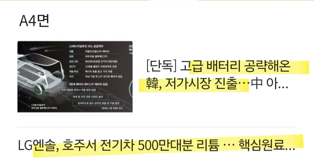 [요약] LG에너지솔루션이 중국 배터리 업체들의 독무대였던 리튬인산철(LFP) 배터리 분야에서 대규모 공급계약. 전기차 캐즘(일시적 수요 둔화)의 벽을 뛰어넘을 돌파구를 마련. 공급 기간은 2025년부터 2030년까지 5년이고, 총 39GWh 규모. 순수 전기차 약 59만대를 생산할 수 있는 양. 배터리셀은 LG에너지솔루션 폴란드 브로츠와프 공장에서 생산해 르노의 차세대 전기차 모델에 탑재