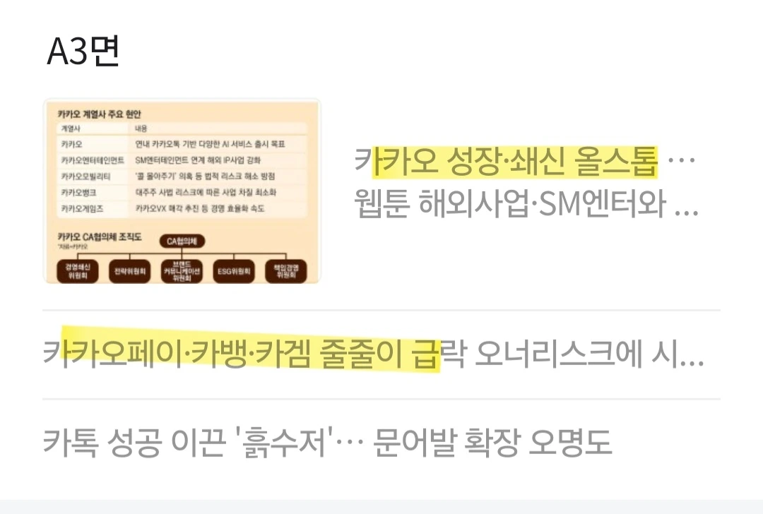 [요약] 김범수 카카오 창업자 겸 경영쇄신위원장(CA협의체 공동의장)이 23일 전격 구속. 카카오는 비상.