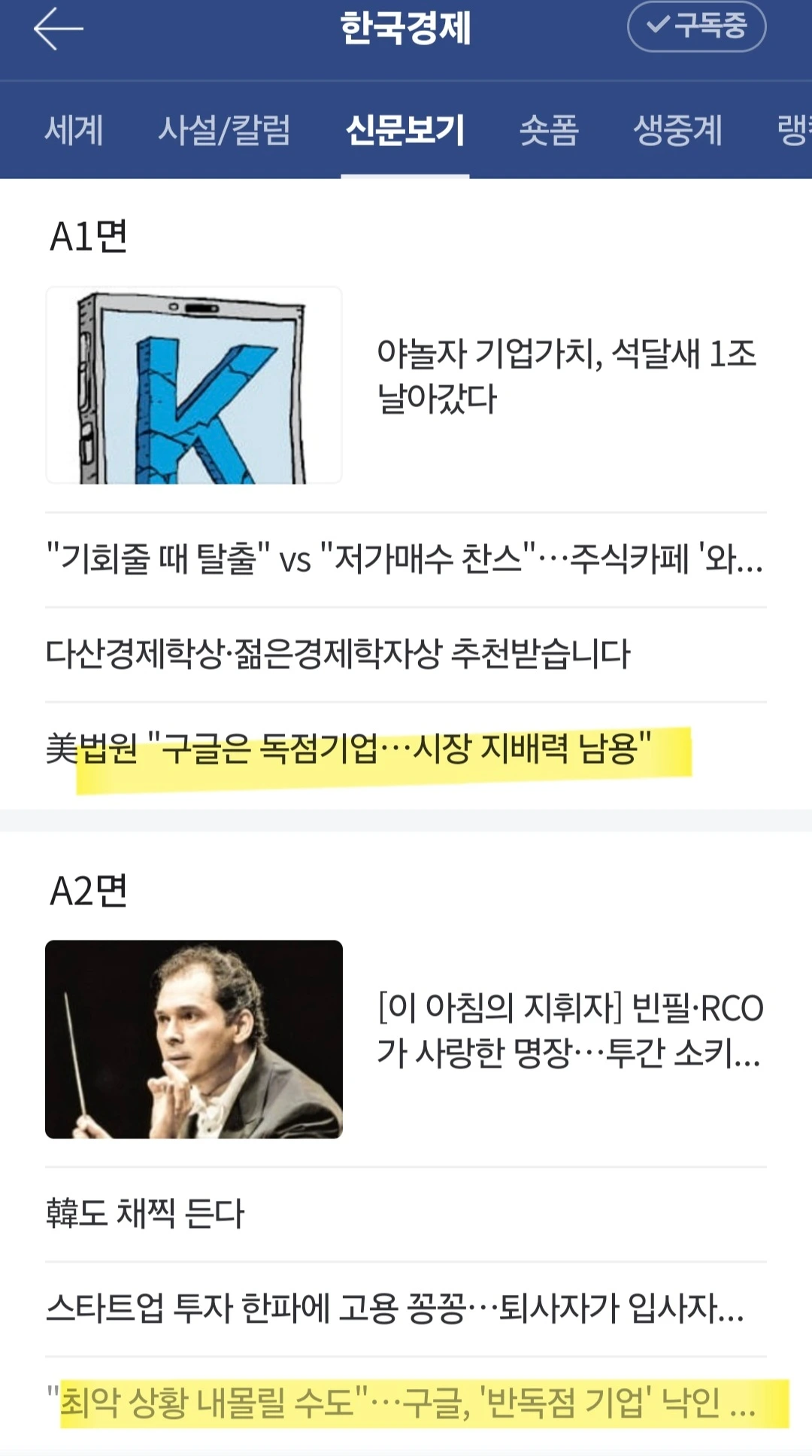 [요약] 구글이 미국 정부가 제기한 반(反)독점법 위반 소송에서 패소. 검색시장에서 독점적인 지위를 이용해 불법적으로 수익을 올렸다는 것이 미국 연방법원의 판단. 업계에서는 구글이 기업을 분리해야 하는 최악의 상황에 내몰릴 수 있다는 우려의 목소리.