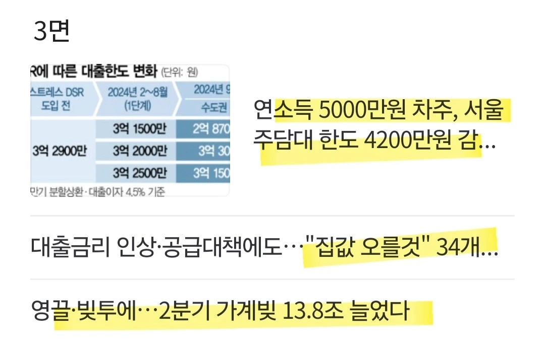 [스트레스 DSR] 나중에 금리가 오를 것에 대비해 미리 대출 한도를 더 조이는 규제. 1단계가 적용되는 이달 말까지는 스트레스 금리 하한인 1.5%포인트의 25%인 0.38%포인트를 은행 주담대에 적용. 2단계부터는 은행 주담대는 물론 신용대출과 2금융권 주담대에도 0.75%포인트의 스트레스 금리 적용
