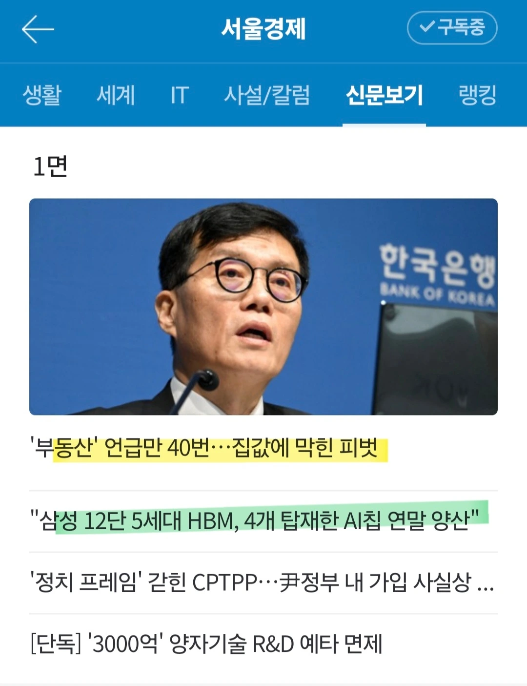 [대통령실] 이례적으로 기준금리 동결 결정에 대해 아쉽다는 의견을 표명. “금리 결정은 금통위의 고유 권한이지만 내수 진작 측면에서 보면 아쉬움이 있다”며 “다음 주 중으로 추석 명절 성수품 공급 등 민생 안정 대책과 함께 소비 진작 대책을 마련해 발표할 계획”