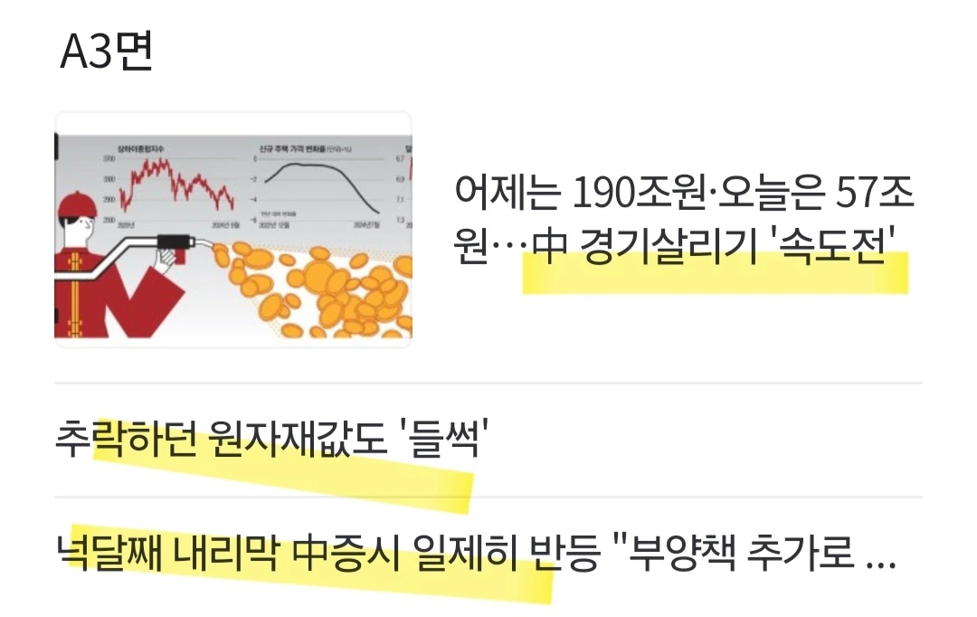 [전망] 모건스탠리의 주식 전략가인 로라 왕은 "이번 조치들은 투자심리와 유동성을 개선하는 데 도움이 될 것" 홍콩 줄리어스 베어의 중국 전략가이자 리서치 책임자인 리처드 탕 "이번 경기부양책은 평소보다 더 큰 증시 반등을 촉발할 수 있다"
