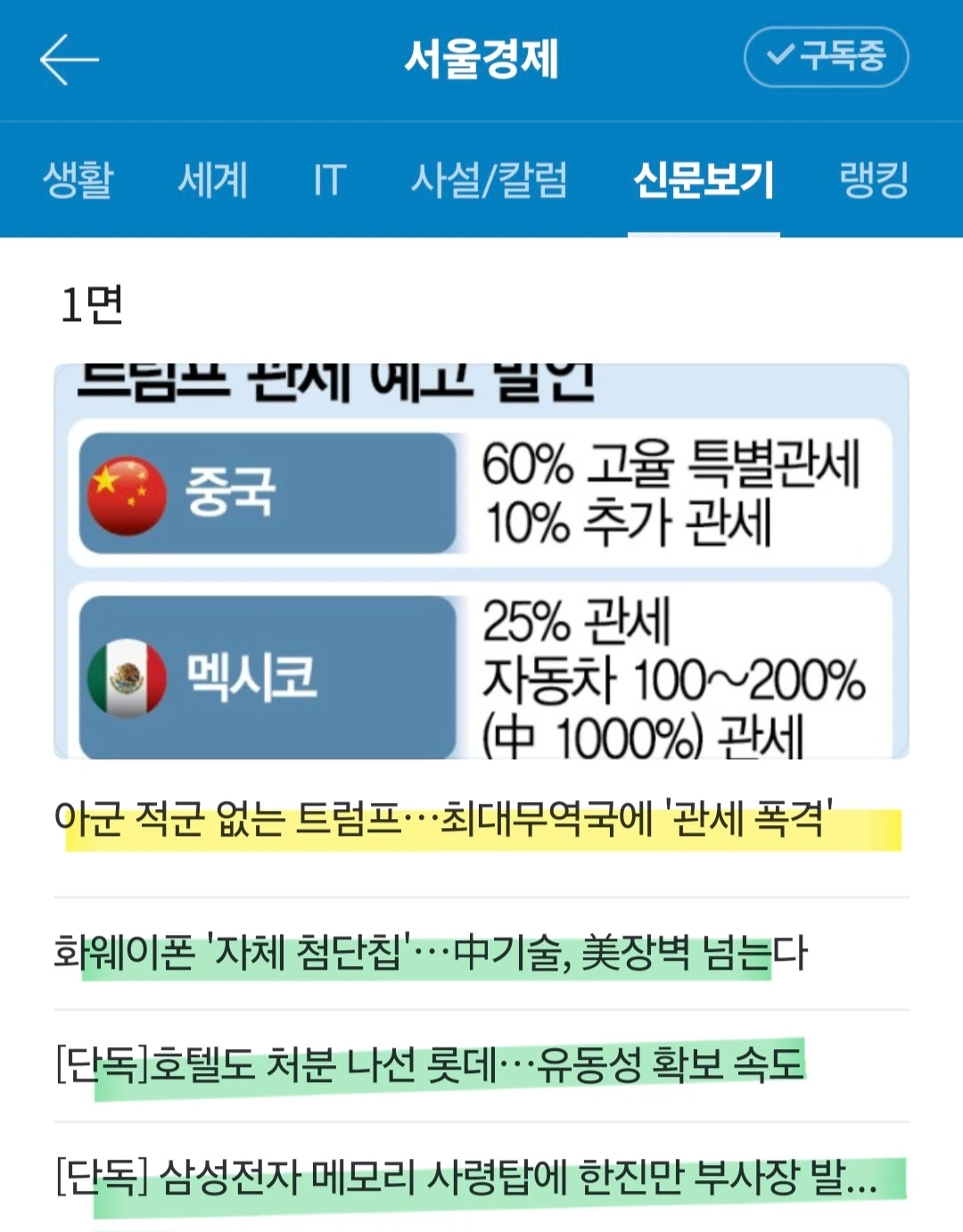 [트럼프의 정책] 철저한 미국 우선주의에 기반한 ‘트럼프 2기’ 통상 정책의 예고편. 대미(對美) 교역에서 이익을 본다면 동맹 및 자유무역협정(FTA) 체결국도 예외는 없다는 기조 아래 대미 3대 수출국을 본보기로 삼았다는 속내