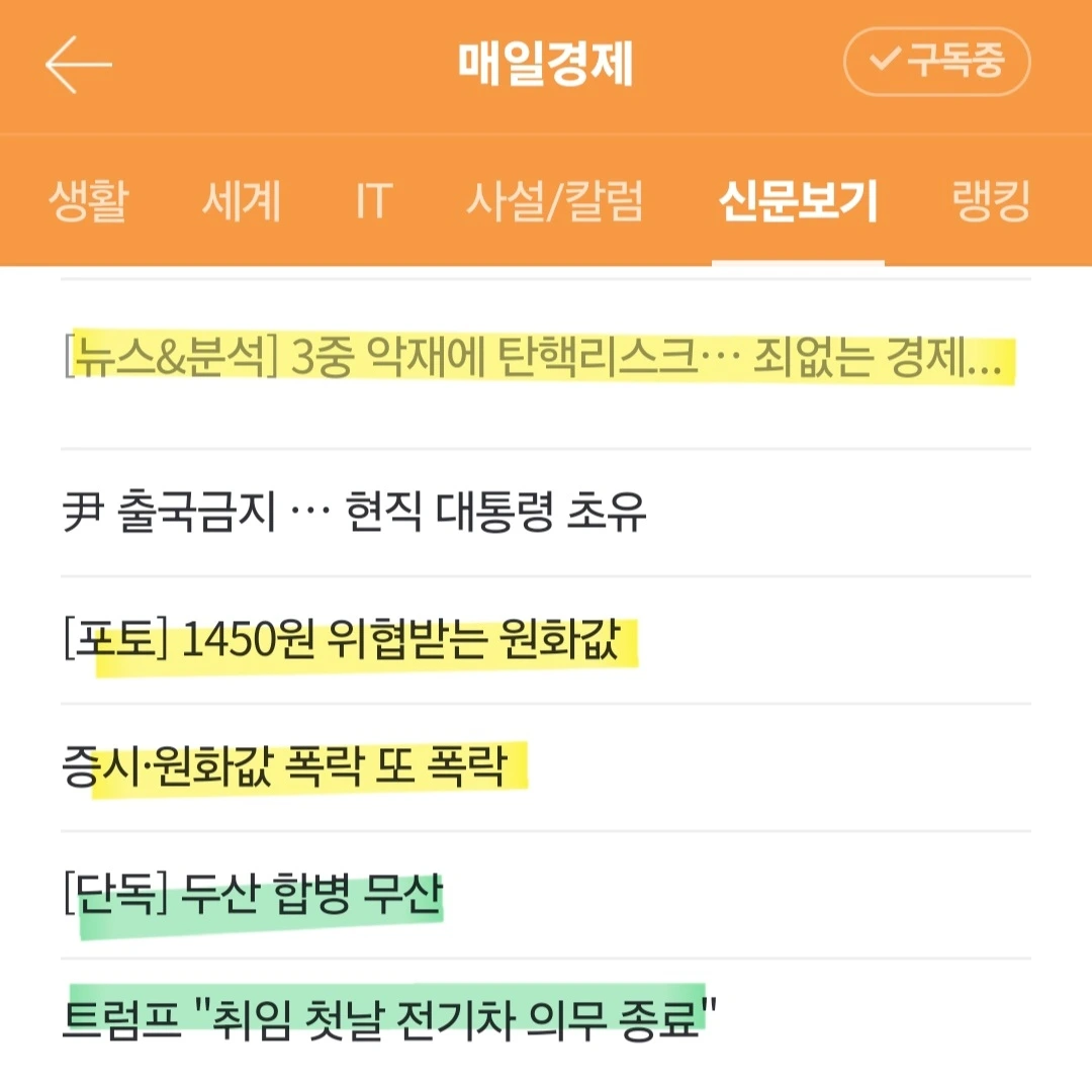 [내수] 내수 침체에 고용 불안까지 겹치며 소상공인, 자영업자들의 시름은 깊어지는 중. 비상계엄 여파로 필수품 외에는 지갑을 닫는 소비 경향. 특히 12월은 크리스마스와 연말연시가 이어져 전통적인 쇼핑 대목으로 꼽히는데 대규모 매출 공백 발생 우려. 관광객 감소로 이어지면 면세점 업계도 큰 타격.