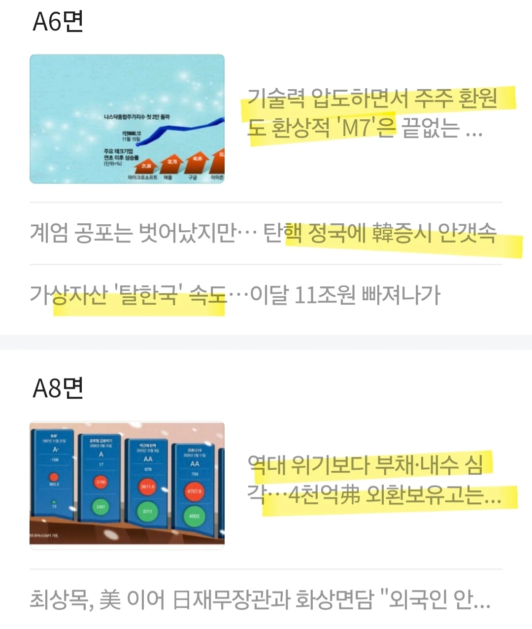 [요약] 미국 나스닥 지수 사상 최초로 2만 돌파. 빅테크 기업은 물론이고 정보기술(IT) 기업 전반이 초강세인 반면 한국 증시는 계엄 사태 이후 높은 변동성.