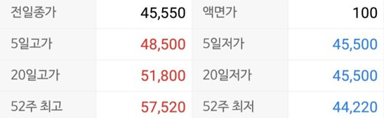 5일, 20일, 52주 고가(최고), 저가(최저)