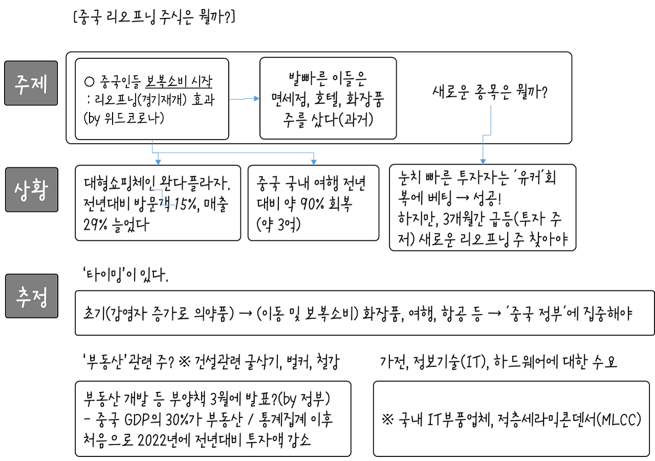 - 중국에 리오프닝(경기 재개) 효과 (by 위드 코로나로 경제 봉쇄 풀림)