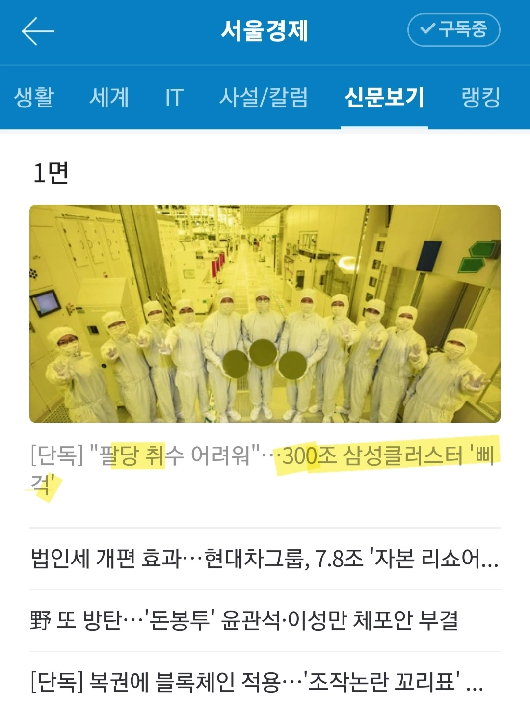 [3면] 핵심산업 > 반도체 > 300조 클러스터 삐걱