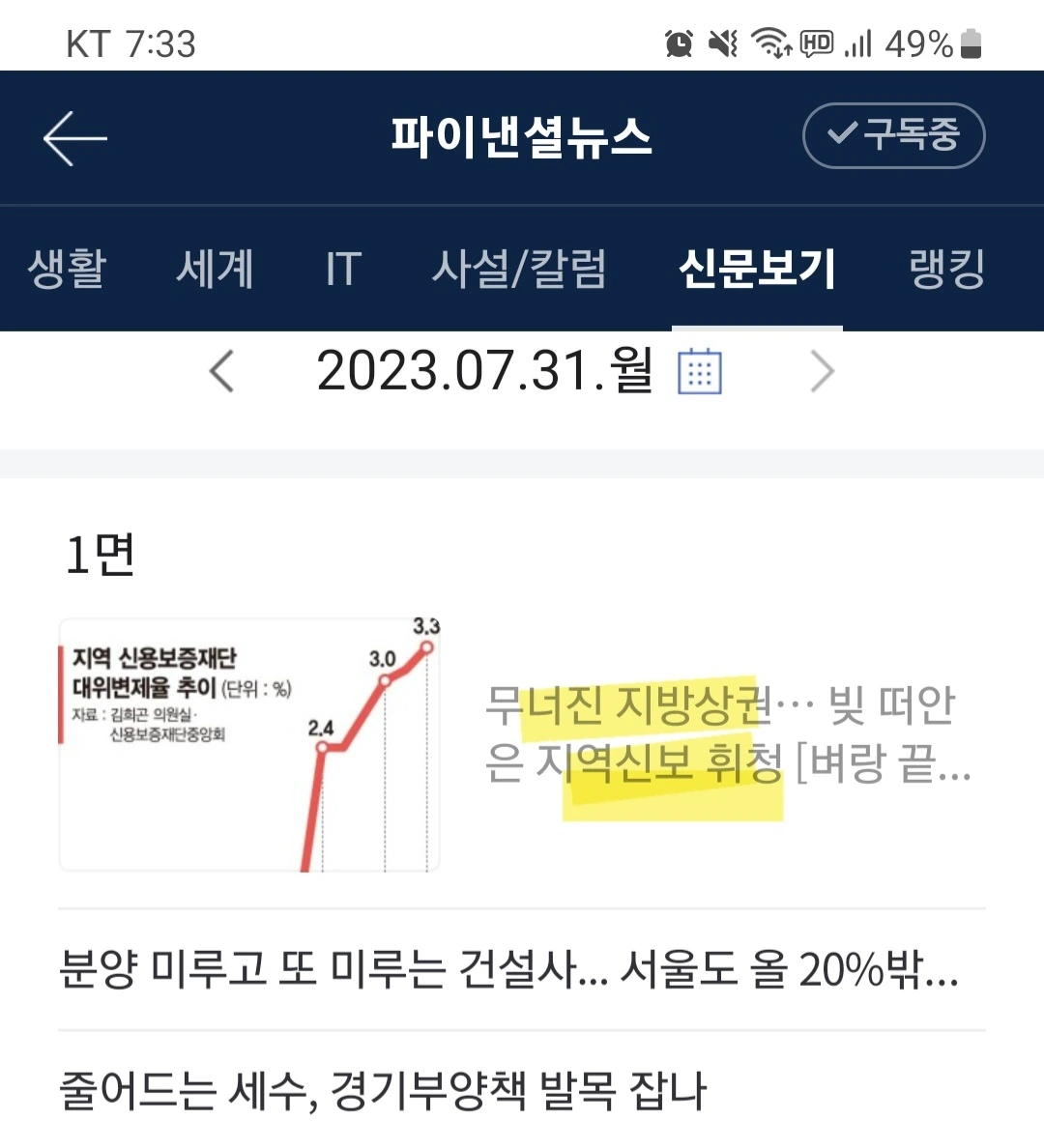 [요약] 지역 신보가 소상공인·자영업자 대신 빚을 갚아주는 대위변제율 3.3%(금융위기 이후 역대 최고치, 전년대비 3배 급증)