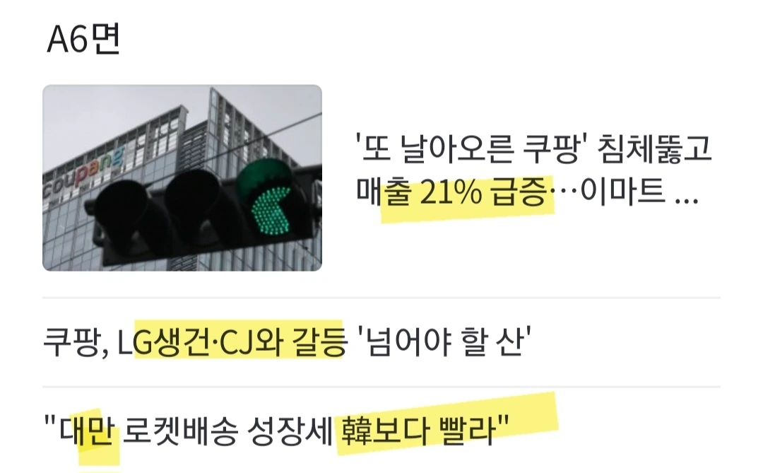 (제조업체와의 분쟁) LG생활건강과의 갈등에서 촉발돼 공정거래위원회와 벌이고 있는 법적 다툼은 다음주 판결. CJ제일제당의 주력 제품인 햇반·비비고·고메 등은 납품가 갈등 때문에 지난해 11월부터 로켓배송으로 구입할 수 없는 상태다. CJ올리브영도 화장품 시장에서 쿠팡과 갈등을 벌이고 있다.