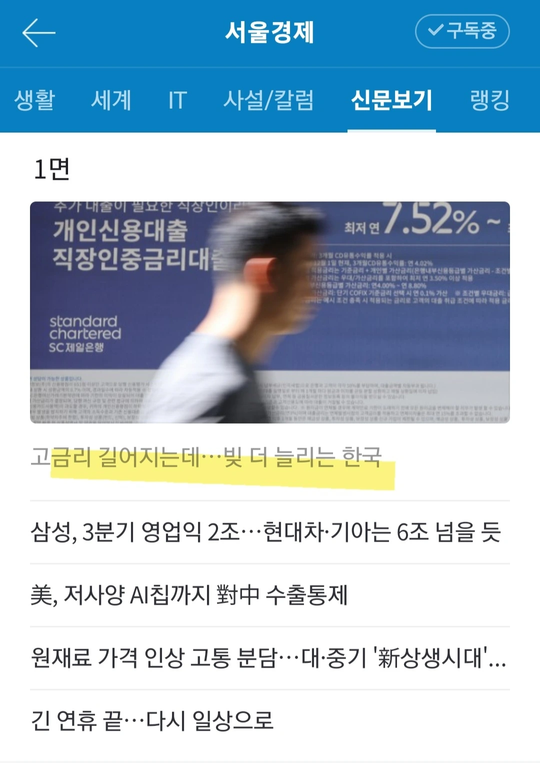 [가계]. 이자 부담으로 허리띠를 졸라매는 통화 긴축기에 빚이 늘어나는 기현상