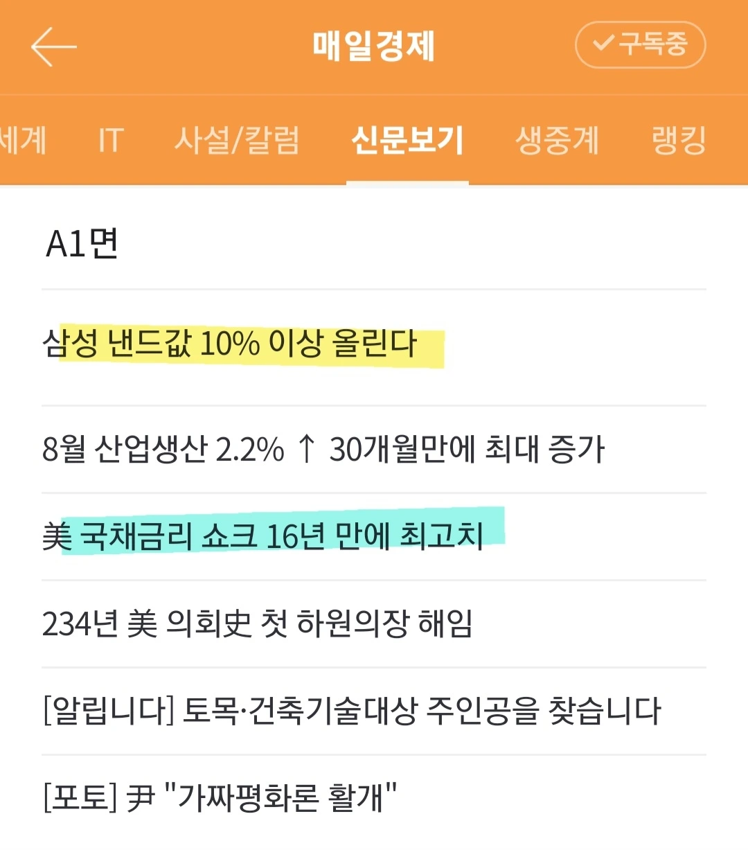 [요약] 낸드플래시(메모리반도체) 시장의 세계 1위 기업 삼성전자가 이르면 이달 중에 두 자릿수 수준으로 가격 인상을 추진. 낸드 부문에서 본격 감산에 들어갔던 삼성전자는 가격 정상화 전략으로 낸드 부문 수익성을 회복하기 위한 행보