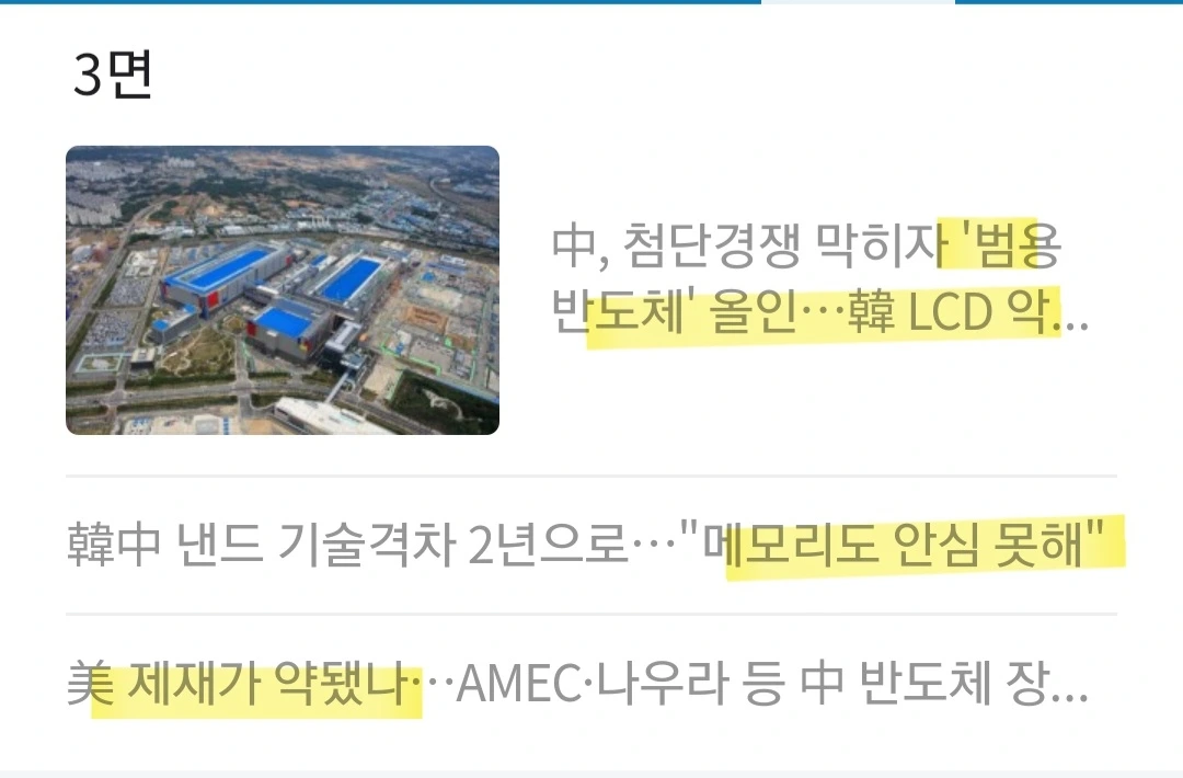 [낸드] 중국 업체들과 미국·한국 등 글로벌 선두 기업과의 기술 격차는 2년 안팎. “D램에서는 여전히 5년 이상 기술 격차가 유지되고 있지만 낸드의 경우 D램보다 기술 장벽이 낮아 상대적으로 빠른 추격이 이어지고 있다”/ “핵심으로 여러 개의 칩을 효율적으로 조합해 고성능을 구현하는 패키징(후공정)이 꼽힌다. 중국은 전 세계 반도체 후공정 시장에서 대만에 이어 2위 점유율을 차지할 정도로 탄탄한 자체 생태계를 보유하고 있다.