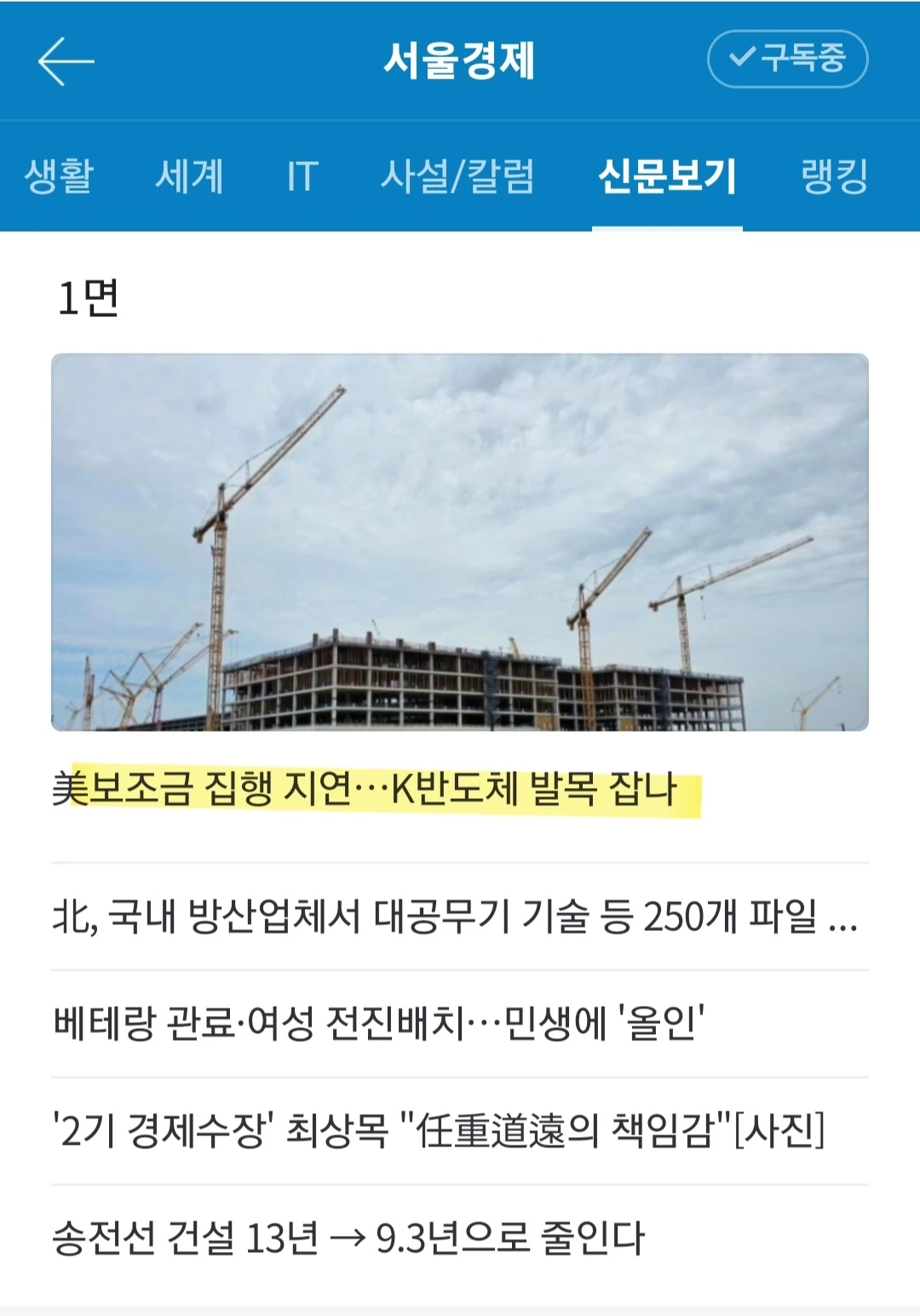 [요약] 미국 정부는 반도체지원법을 도입하면서 반도체 공장을 짓는 기업들에 총 527억 달러(약 69조 원)의 보조금을 주겠다고 약속/ 지난달 초 “군사용 반도체 생산을 위해 인텔에 최대 40억 달러의 보조금 선지급할 것”이라는 보도가 나오면서 분위기가 급반전/ ‘미국 기업 우선’으로 정책 방향 바꾸면 보조금 규모가 줄거나 지급 시기가 뒤로 밀려날 수 있기 때문