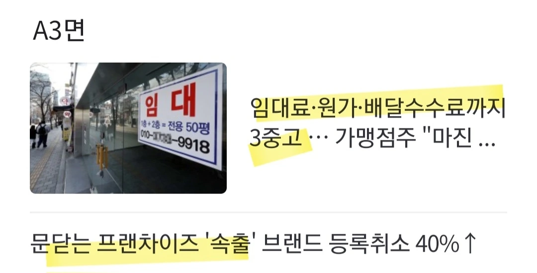 [이유2] 임대료를 비롯해 식자재 가격, 인건비 같은 다른 비용 상승도 점주들을 압박. // 특히 서울 도심 지역 핵심 상권의 임대료가 급등