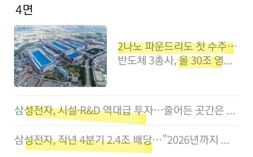 [파운드리] 4분기 수요 부진. 다만 연간 최대 수주 실적과 선단 공정 과제 수주로 실적 개선에 대한 기대감. 2㎚(나노미터·10억 분의 1m) AI 가속기 칩 과제를 수주했다고 밝혔다.