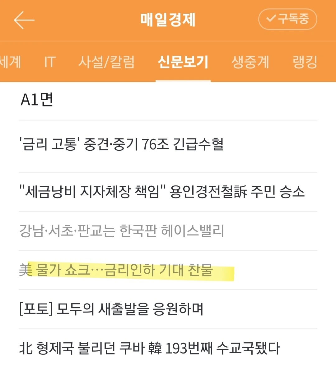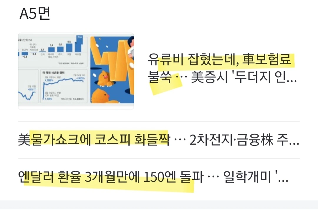 [요약] 미국 소비자물가지수(CPI)가 예상보다 높게 나오면서 외환시장을 비롯한 금융시장이 크게 흔들. 인플레이션이 여전히 강한 상태여서 미국 금리인하 시기도 좀더 늦춰질 수 있다는 불안. 외환시장에선 달러값이 강세, 상승세를 이어가던 증시도 주춤. 금리 인하시기는 6월까지 미루는 모양새