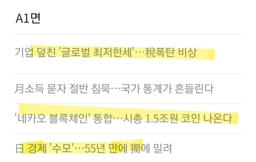 [혼잣말] 오늘은 유난히 끌리는 3면이 없다. 그래서 1면 기사 세 개를 주요기사 개념으로 묶었다.