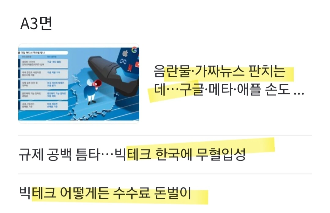 [역차별 문제] 해외에 본사를 둔 글로벌 빅테크는 빠져나가고, 한국 기업만 희생될 가능성이 있다는 염려. 틱톡, 알리익스프레스 등 중국 플랫폼 기업만 어부지리를 얻을 것이라는 우려도.