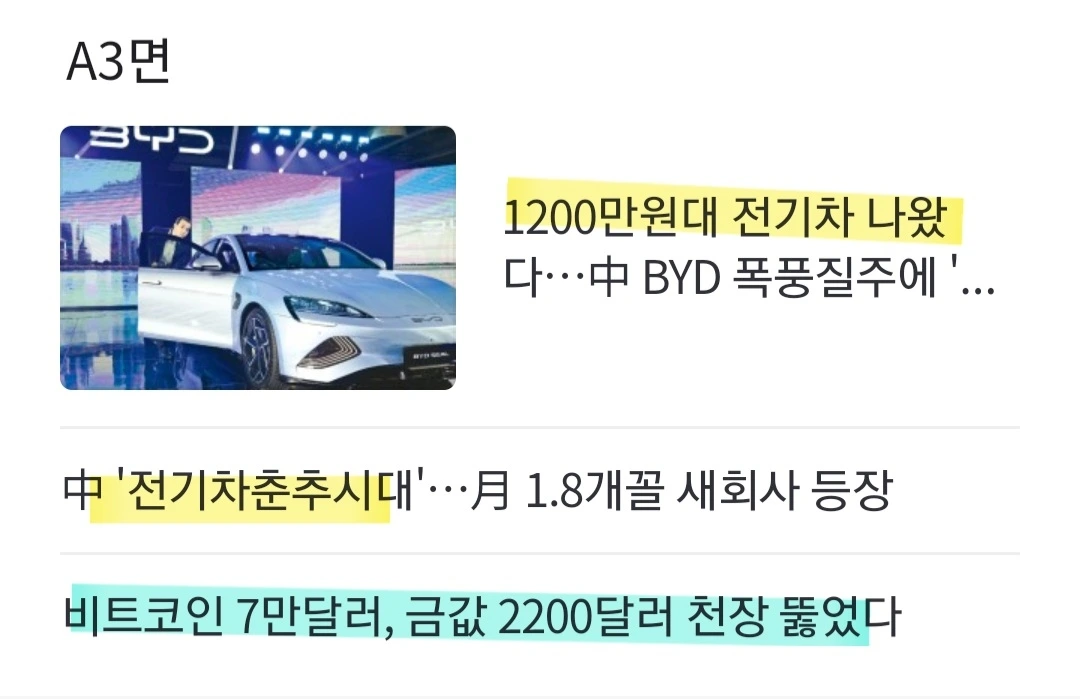 [가성비] 보급형 전기차 ‘시걸’ 가격은 9695달러. 전기차를 1만달러 밑으로 판매할 수 있는 대형 자동차업체는 전 세계에서 BYD뿐. 경쟁사들보다 생산 비용을 최대 30% 낮출 수 있는 시스템. BYD는 전기차에 들어가는 배터리부터 차량용 반도체, 소프트웨어까지 전체 부품의 75%를 자체 생산.