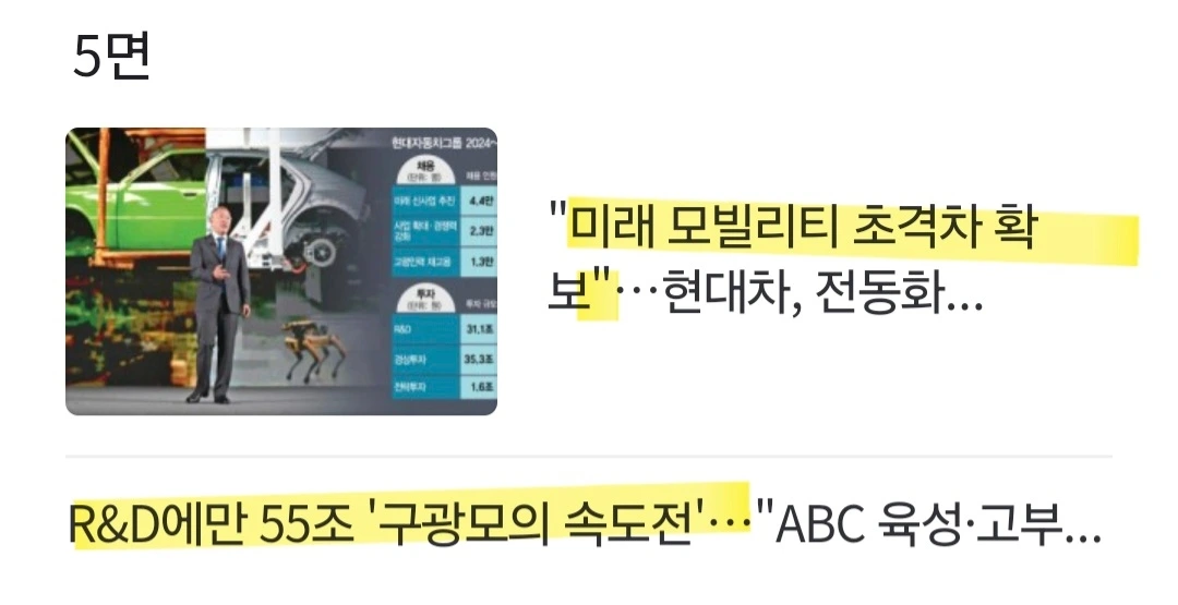 [현대차그룹] 2026년까지 3년간 국내에 8만 명을 채용하고 68조 원을 투자. 연평균 투자 규모는 22조 7000억 원으로 지난해 17조 5000억 원보다 30% 증가.