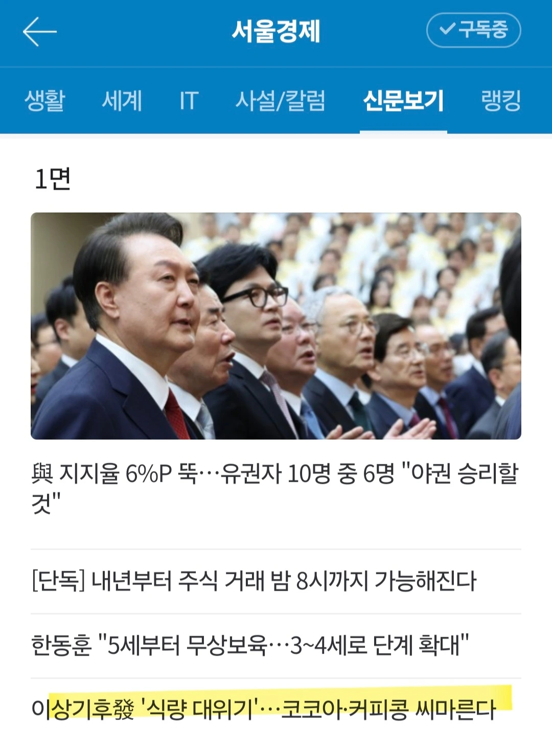 [요약] 이상기후에 따른 농작물 피해가 세계적인 문제. 매년 최악의 기록을 경신하는 폭염·폭우 등 기상이변은 단순히 재화 가격을 올리는 것을 넘어 기업가치와 국제시장을 뒤흔들고 산지를 비롯한 주요 국가의 식량 생산 지도마저 다시 그리게 하는 중.