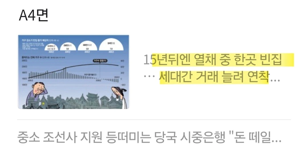 [요약] 초저출생·고령화로 가구 수가 점점 줄어들기 시작하는 2039년부터 집값 하락 국면이 본격화할 것이라는 경고
