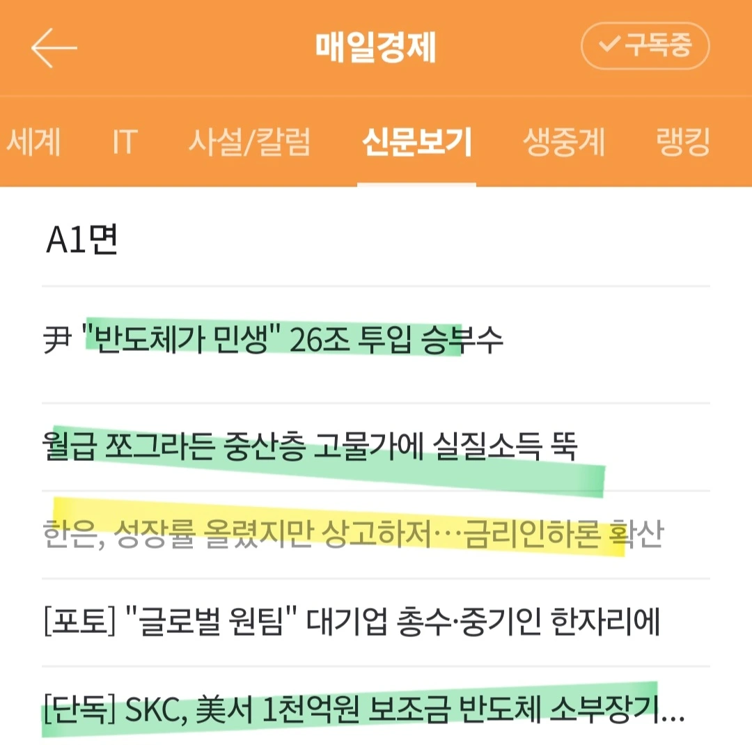 [경제성장률 상향 이유] 반도체를 비롯한 수출이 선전했고 소비가 반등하며 1분기 GDP 성장률이 전 분기 대비 1.3% 깜짝 성장한 상황을 반영. 다만 올해 성장률은 상반기 2.9%로 강하게 반등한 뒤 하반기 2.2%를 기록하며 '상고하저' 흐름을 보일 것. 하반기 내수 회복을 본격화하기 위해서는 금리 인하가 '필요조건'. 한은은 올해 소비자물가 상승률 전망을 종전과 같은 2.6%로 유지. 한국은행 총재"현 상황에서 추가로 금리를 인상할 가능성은 제한적""소비자물가 상승률이 2.3~2.4%로 내려가는 트렌드가 잘 확인되면 금리 인하를 고려할 수 있다"