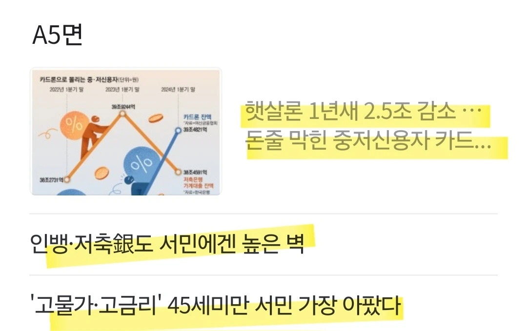 [요약] 경기 부진이 계속되는 가운데 서민정책금융과 저축은행 대출 문이 좁아지면서 중·저신용자들이 카드론으로 몰리는 중.