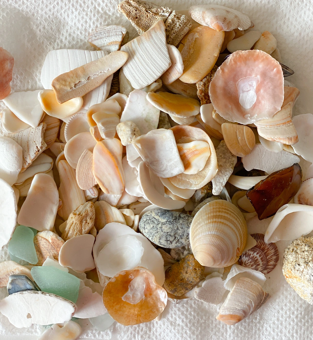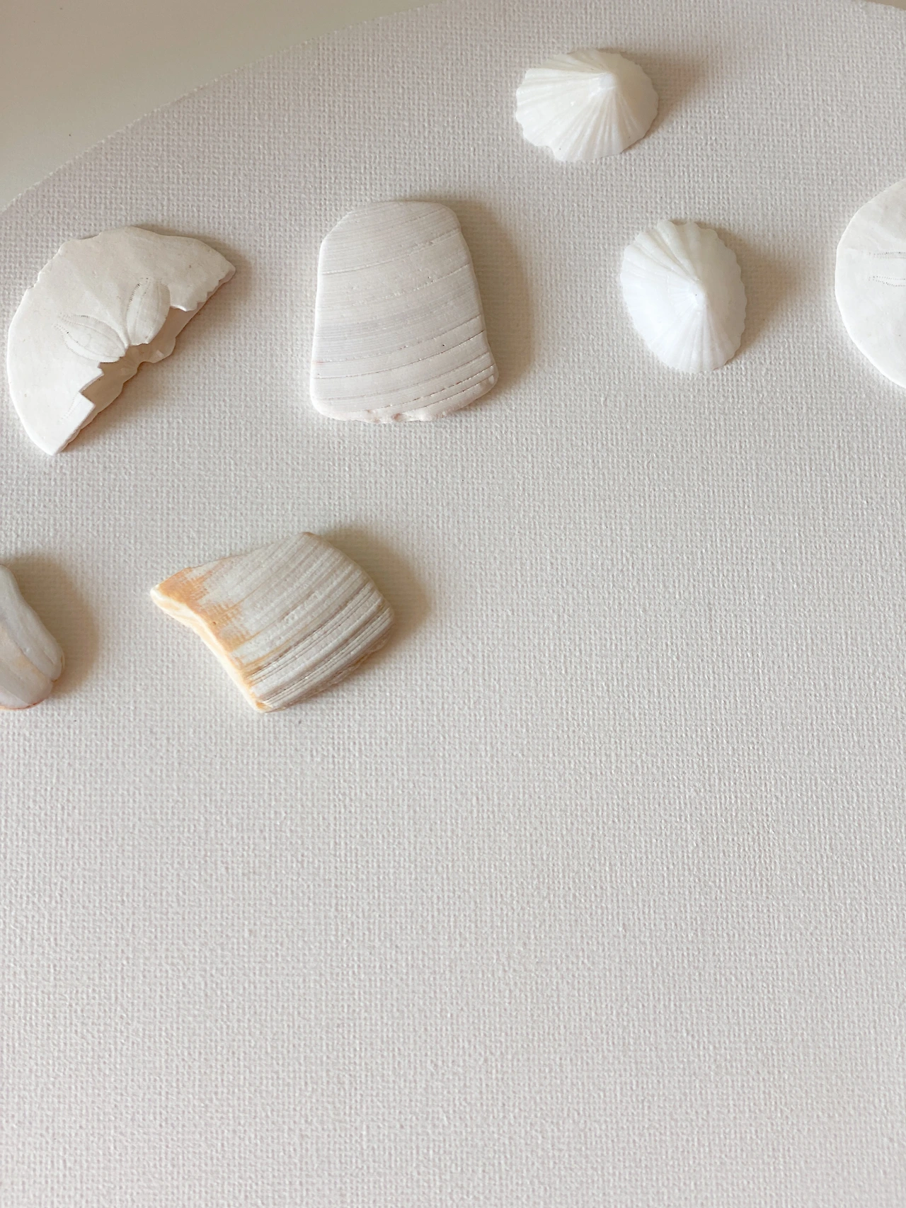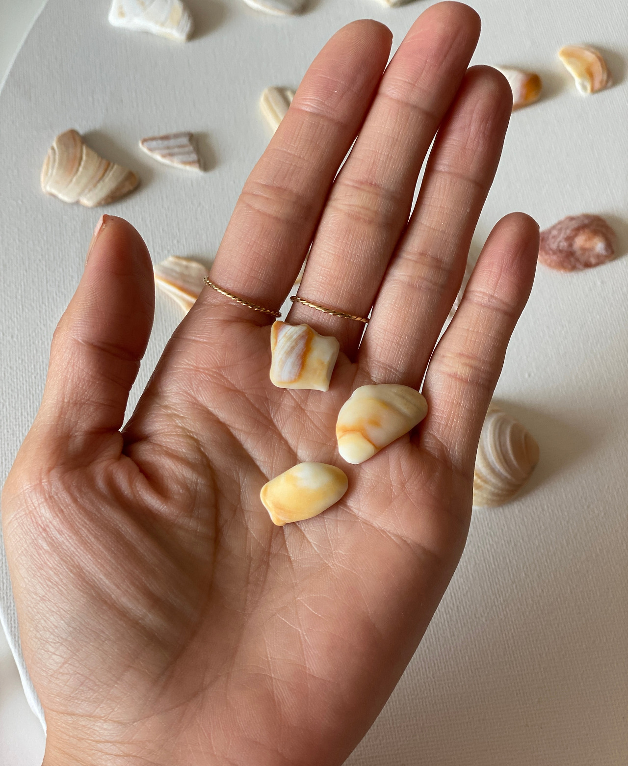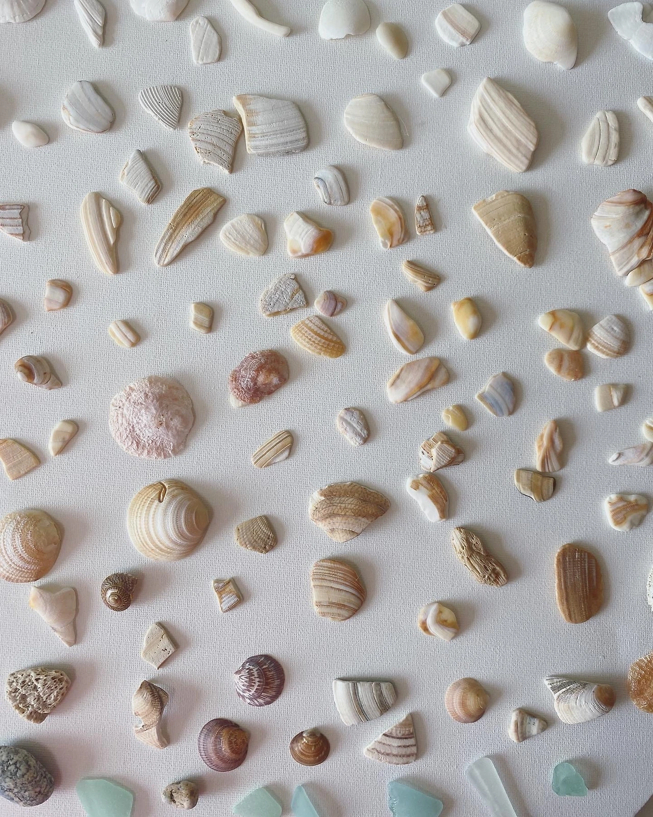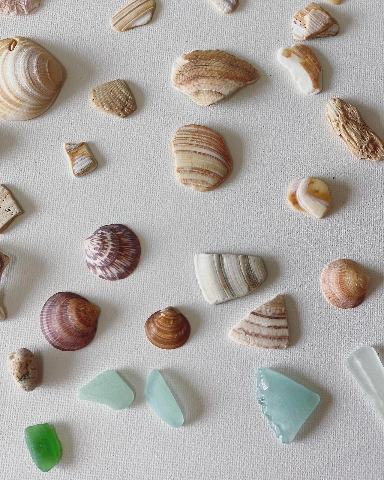 1. 해변가에 앉아 본격적으로 조개껍질 조각을 모은다. 이런저런 조각들을 줍고 찾아내고 만지다 보면 자기가 좋아하는 형태에 대한 감을 발견할 수 있다.