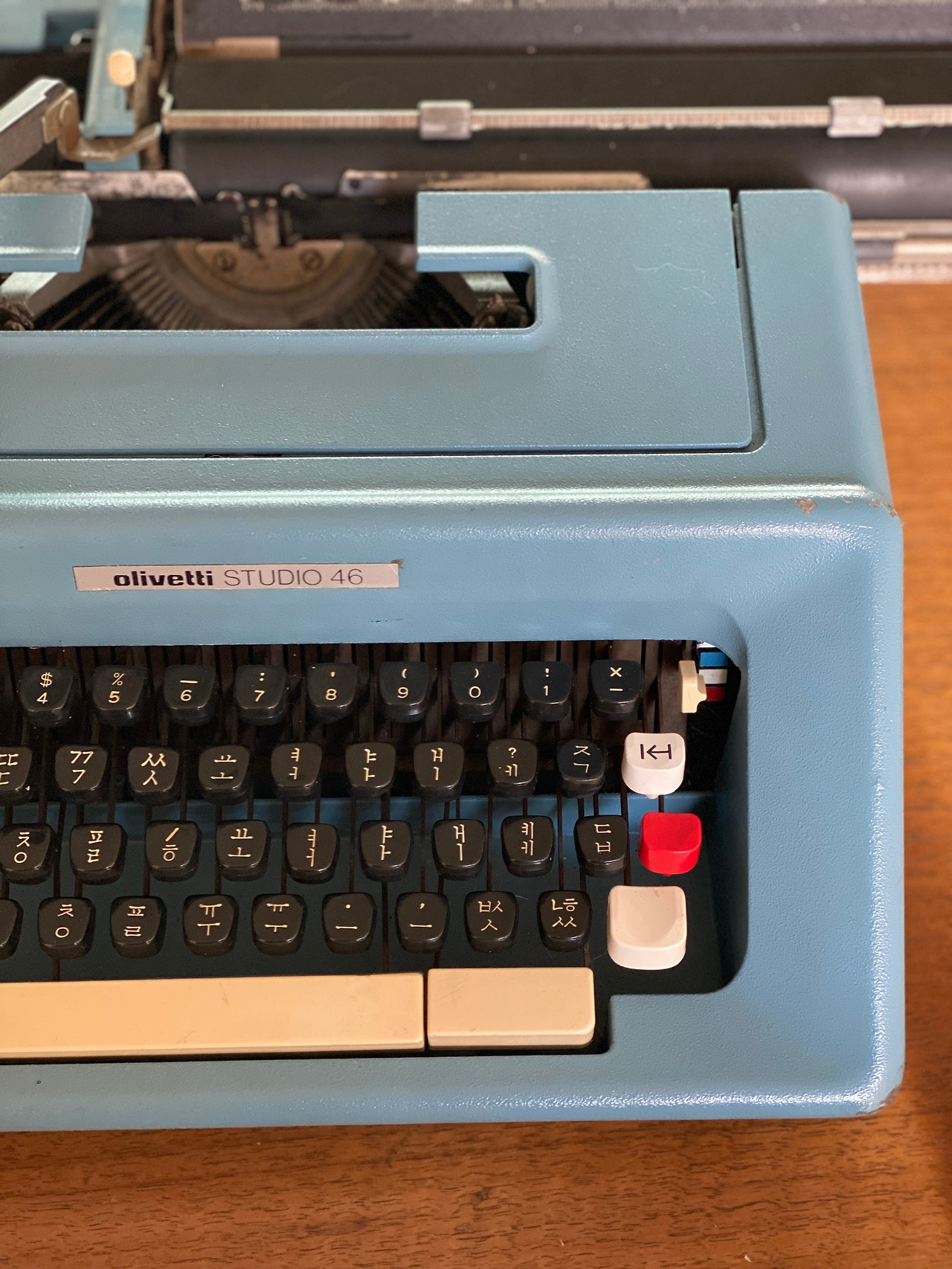 커다란 상자에서, 여기저기 흠집이 있고 얼룩이 진 , 사연이 스무 개가 아니라 백개는 있을 것 같은, 아름다운 하늘색 타자기가 나왔다. 타닥타닥 소리마저 아름답고, 타자기 앞에서 내 손이 해야 하만 하는 불필요한 노동조차도 너무나 즐거워서 웃음이 나온다. 좋아하는 음악을 틀어놓고 타자기 앞에 앉아 타닥타닥 아무 말대 잔치를 쏟아내고 나면 여태껏 느껴보지 못한 카타르시스에 머리부터 발끝까지 시원해진다. 거기에 더해 아이가 타자기 앞에 앉아 시를 쓰는 그 아름다운 모습이라니!