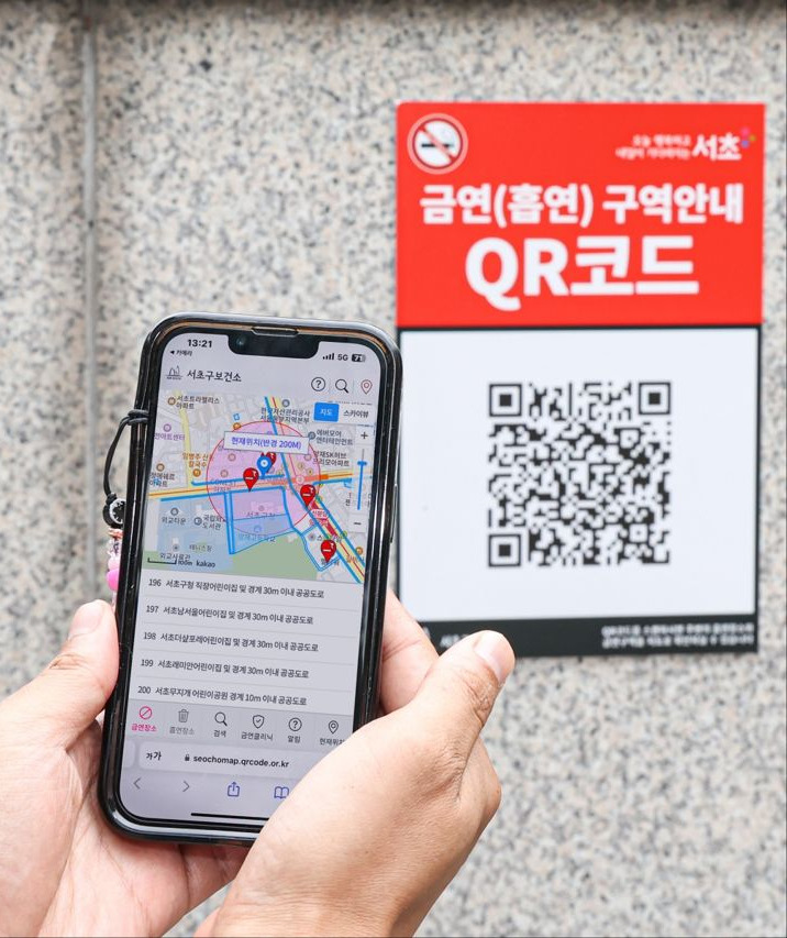 서초구가 선보인 '금연과 흡연구역을 안내해 주는 QR 코드'가 ‘2024년 서울 금연 도시 성과대회’에서 심사위원들의 주목을 받았다고 한다. 전국 최초로 실외 금연·흡연구역을 알려주는 방식이다. QR코드를 스캔하면 자신의 위치 반경 200m 이내 실외 금연·흡연구역을 웹 지도로 알려준다. 흡연심리를 반영해 흡연시설 반경 200m 이내 지하철역 출입구, 버스정류장, 편의점 입구 등에 부착했다. 흡연 다발지역인 서울고속버스터미널 인근 12개의 QR 안내판 도입 전후를 비교한 결과 단속 건수가 약 25% 감소 효과를 나타내기도 했다. 11월 현재 전체 QR 안내판 접속 건수는 1만 5011건에 이른다.