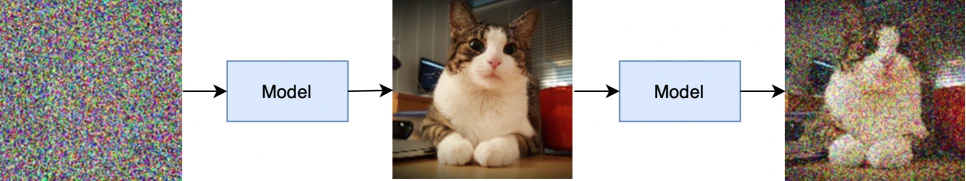 Diffusion 모델 또한 매우 유사한 방식으로 학습됩니다. 원본 이미지나 데이터를 받아, 그 위에 인위적으로 가우시안 노이즈를 추가한 버전을 생성한 후, 노이즈가 섞이기 전의 상태를 예측하도록 모델을 훈련시킵니다.