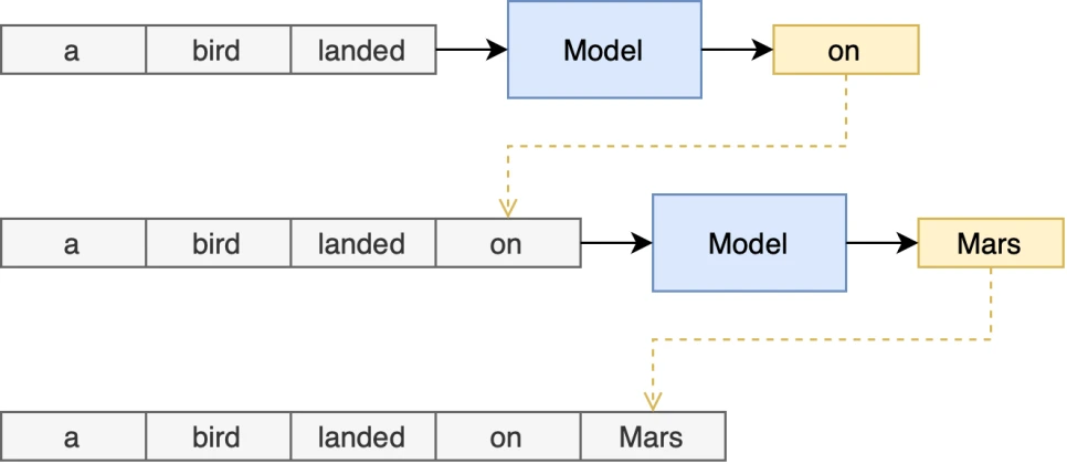 예를 들어, GPT와 같은 언어 모델이 "오늘 날씨가"라는 입력을 받으면, 이전 단어들을 바탕으로 "좋습니다"라는 다음 단어를 예측하고, 다시 "오늘 날씨가 좋습니다"를 바탕으로 다음 단어를 예측하는 방식으로 문장을 완성해 나갑니다. 마치 글쓰기를 할 때 한 단어씩 이어 나가는 인간의 방식과 유사합니다.
