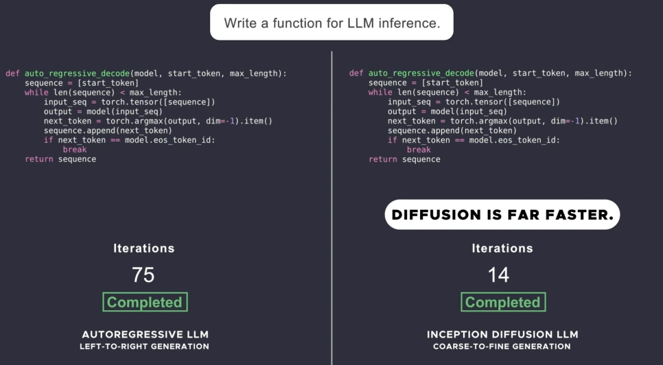 이 모델은 문장을 통째로 다듬어 나가기 때문에 속도가 빠르고 문맥적 일관성이 뛰어나다고 알려져 있으며 데모 영상에서는 기존 LLM 대비 10배 가까이 빠른 모습을 보여주며 많은 관심을 불러보았습니다.