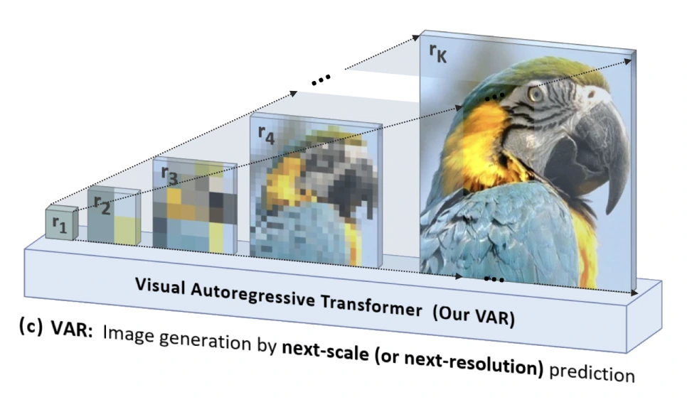 한편으로 Auto Regressive 모델도 이미지 생성 등 원래 확산 모델이 강세였던 분야에서 성과를 내고 있습니다. 최근 Auto Regressive 이미지 생성 모델 분야에서는 'Visual AutoRegressive 모델링(VAR)'이 주목받고 있습니다.