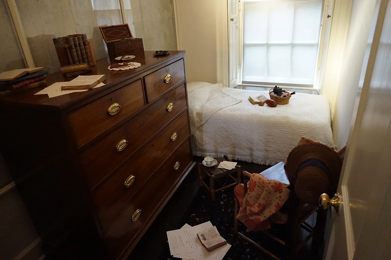 문학관에서 부엌 외에 에밀리의 공간을 찾아가는 것은 쉽지 않았다. 흔적은 방과 방 사이의 좁은 틈새의 공간에 꾸며진 침실이 아마도 에밀리가 사용했던 침실이 아닐까, 라는 추론이 그 자리를 채우고 있을 뿐, 그녀가 이 집에서 어떻게 지냈는지 알기란 쉽지 않았다. 자매들 가운데 오래 살았던 샬롯의 흔적은 집안 곳곳에서 찾아볼 수 있지만, <폭풍의 언덕>만을 남기고서 떠난 에밀리는 많은 작품을 남기지 않았을 뿐만 아니라, 자신의 자취 역시 많은 부분 비밀로 남겨두었다. 그렇기에 자매들 중에 그녀에 대한 열혈 팬들의 관심이 쏟아지는 지도 모른다.