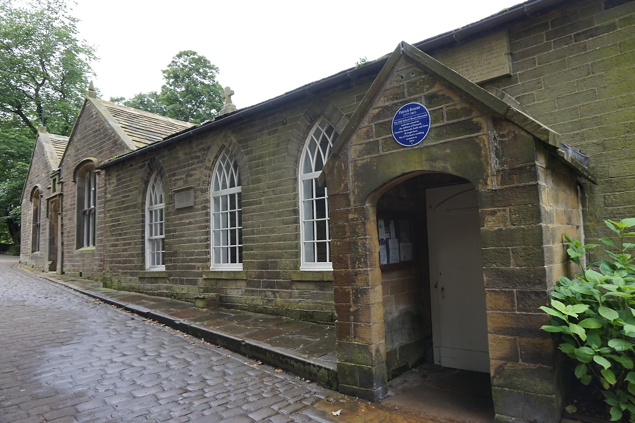 천천히 걸으며 브론테 자매의 아버지가 목사로 있었던 하워스 교구 교회 St Michael & All Angels Church를 향해 올라가는데 빗줄기와 바람이 서서히 잦아들어갔다. 빠르게 재촉했던 발걸음을 늦추고, 언덕을 올라가다 뒤돌아 멀리 보이는 푸른 언덕과 그 사이를 가르는 검은 울타리. 옹기종기 모여 있는 노란 잿빛 건물들이 무채색 안갯속에서도 굳건히 자신의 자리를 지키는 모습이 보였다. 주변에 자리한 건물들 역시 아기자기한 장식들이 건물 외관을 가렸지만, 원래 건물의 빛깔이 밤색이었다. 다시 바람이 불기 시작했다. 뒤에서 나를 떠미는 바람을 타고 언덕을 올라가자 바로 브론테 목사가 봉직했던 교회와 옆에 세워진 학교 건물이 눈에 들어왔다. 브론테 자매들이 학생들을 가르친 이름 두 곳 다 실내에 외부인의 출입을 허락하고 있지 않았다. 외관을 눈으로 담는 것으로 아쉬움을 달랠 수밖에 없었다. 비에 젖어 거무스름한 건물들은 선명하게 짙은 검은빛 건물들이 다가왔다.