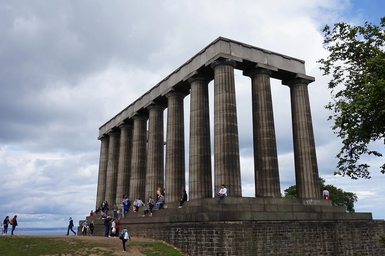 가볍게 점심을 먹고 천천히 칼턴 힐(Calton Hill)을 올라갔다. 스코틀랜드 계몽주의 철학자 듀갈드 스튜어트(Dugald Stewart) 기념비와 거대한 신전의 파사주를 만든듯한 건축물이 있는 칼턴 힐은 마치 아테나의 아크로폴리스를 떠올리게 만든다. 도시의 전경을 내려다볼 수 있을 뿐만 아니라, 언덕에 우뚝 솟아있는 갖가지 기념물을 볼 수 있어 많은 사람들이 찾는 에든버러 명소 중 하나다. 부담 없이 오를 수 있는 언덕을 올라, 도시의 풍광을 내려다보면 꽤 시원한 바람이 뺨을 스친다. 언덕 한쪽에 걸터앉아 올드타운이 마치 에든버러 성의 연장선인 듯 검고 거대한 성채처럼 보이는데, 하나 둘 내가 지나온 곳을 눈으로 담다 보면 마음이 평안해진다. 대도시 마천루나, 웅장한 자연 풍광과 또 다른 무언가. 즉, '시간의 무게'를 버텨온 도시가 주는 감동이 마음에 훅 들어온다.
