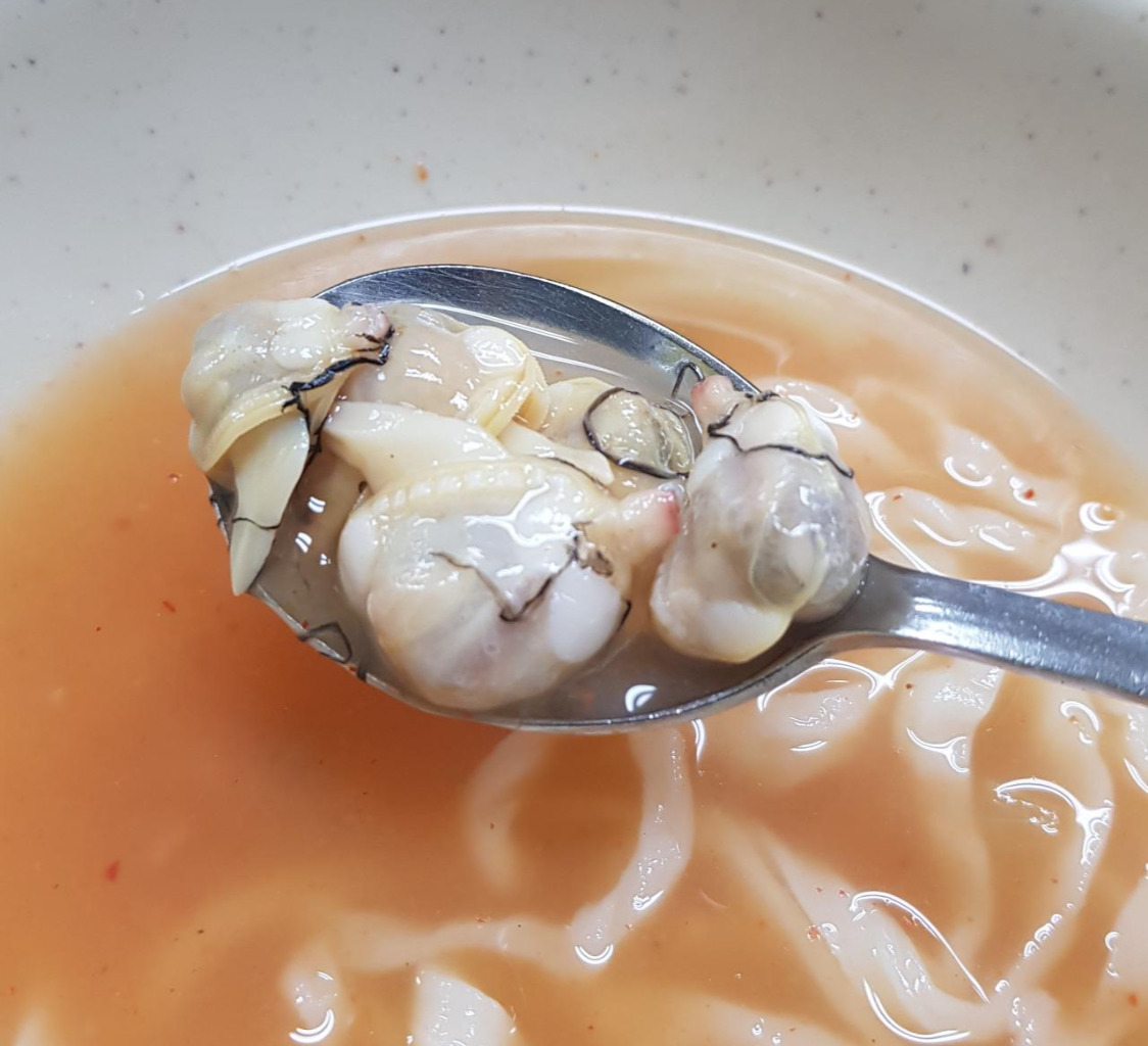 또 하나의 주력메뉴는 일명 '물총탕'이라 불리는 동죽조개탕이다. 칼국수와는 다르게 동죽조개를 우려낸 육수에 청양고추를 넣어 깔끔하고 시원하면서도 칼칼한 매운맛을 살린 음식이다. 면이 안 들어가서 국물의 질감이 가벼우면서 맛은 시원한데, 아주 훌륭한 국물 안주가 되어준다. 물론, 넉넉하게 들어간 동죽조개를 발라먹는 것 또한 빠질 수 없다. 필자는 보통 2인으로 가서 조개탕 하나와 칼국수 1인분을 시켜 두 국물의 맛을 동시에 즐기는 편이다.