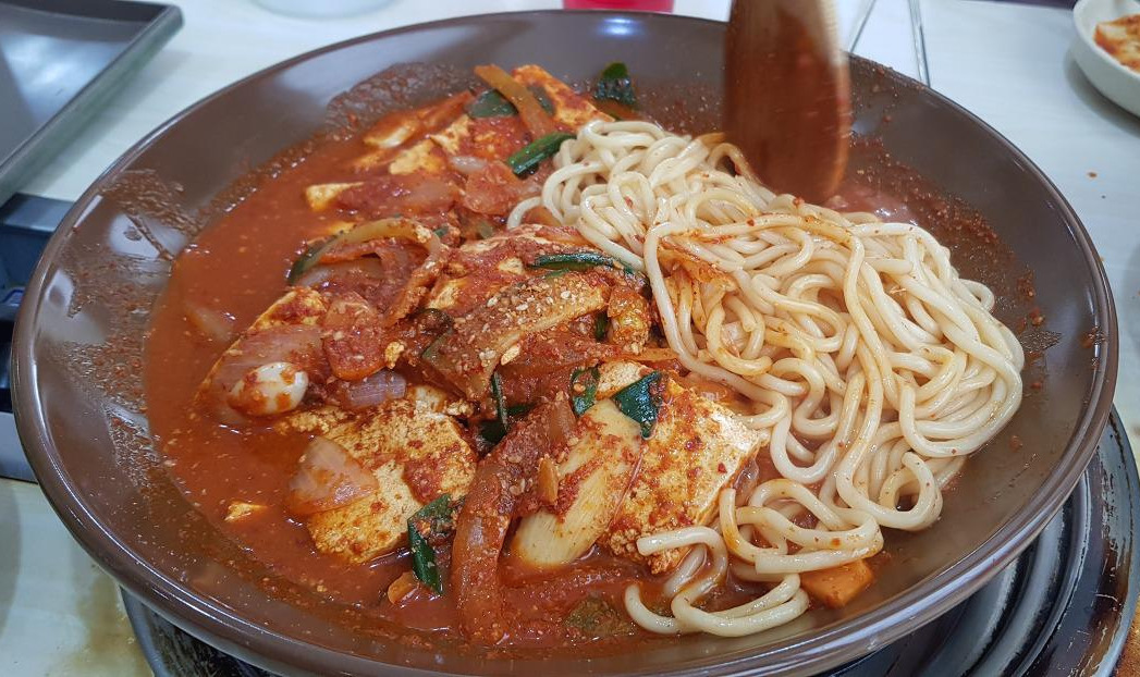 깔끔하고 시원한 두부탕에 사리를 넣어 먹는 칼국수