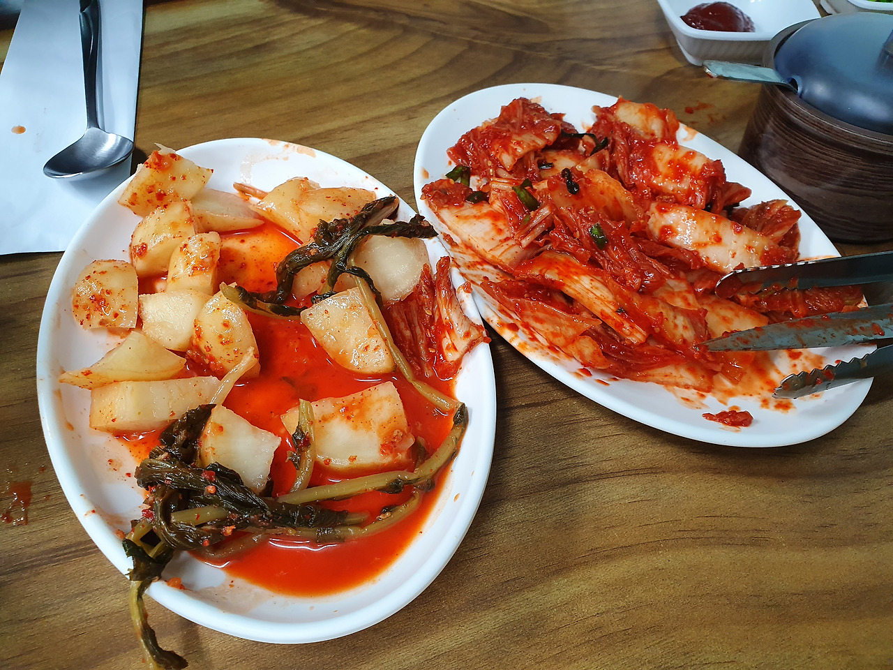 식당의 내부사진(좌)과 외부사진(우) <출처: 본인> 식당 내부의 분위기는 유성 시장 주변에 있는 제법 오래된 식당의 분위기를 풍기지만, 일일이 수저집을 씌워둔 수저에서 언밸런스한 정갈함과 깔끔함을 느낄 수 있다. 가격 역시 6,000원으로 저렴하다. 단점이라면 주차가 어렵다는 점인데, 유성 시장과 가까운 구도심에 있어 주차장이 마땅치 않다. 현재(21년 12월)는 바로 옆에 구 터미널 철거부지가 있어 주차가 쉽지만, 몇 년 내로 건물이 올라갈 예정이다.