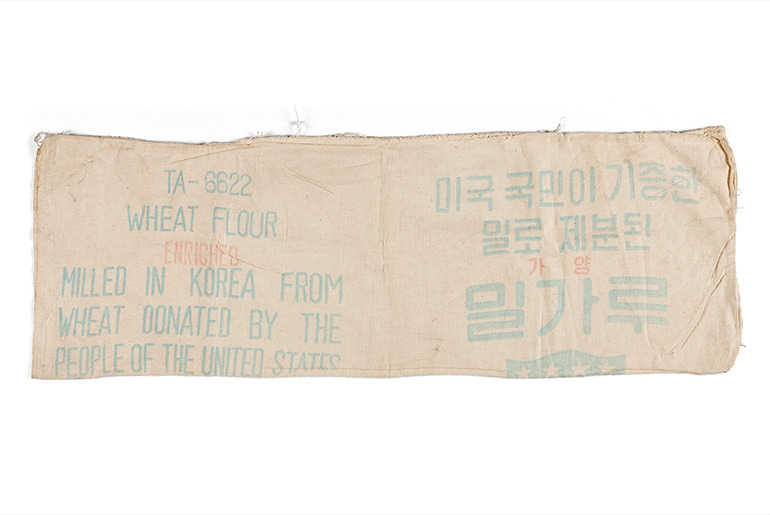 1950년대 미국의 원조품으로 들어온 밀가루 포대 <출처: 대한민국역사박물관> 대전의 칼국수들을 살펴보기에 앞서, 왜 '대전'에서 칼국수가 흥했는지 이야기해보자. 대전시가 밀고 있는 음식으로 칼국수와 빵이 있다. 이 둘의 공통점은 바로 밀가루 음식이라는 것이다. 여기에는 역사적인 이유가 있다. 대전은 일제강점기에 경부선과 호남선 철도의 분기점이 되면서 본격적으로 도시가 형성되기 시작했다. 그리고 한국전쟁 이후, 이 교통의 요지에 경상, 전라, 충청으로 내려보낼 미국의 원조 물자들의 저장소가 설치되었다. 미 원조 물자의 대다수를 밀가루가 차지했던 만큼, 대전에는 많은 밀가루들이 모이기 시작했으며, 이를 가공할 제분소들이 생겼었다고 한다. 때문에 다른 어느 도시보다도 밀가루를 구하기 쉬웠고, 이를 이용한 칼국수와 빵이 발달한 것은 자연스러운 수순이라고 할 수 있다.