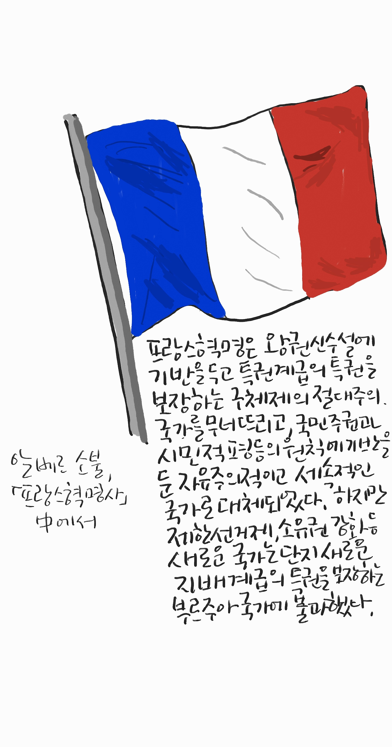 프랑스혁명은 한 마디로 상업과 무역 또는 법조계 등 전문직에 종사하며 부를 쌓은 부르주아가 제1, 2 신분 중 특히 귀족의 특권을 없애고 자신들의 재산과 자유를 유지 확대하기 위한 투쟁이었다. 당시 부르주아는 특권층인 성직자와 귀족에 이어 제3신분으로 ‘3부회’를 구성하는 평민의 상층부에 속했다. 인구 비율로 보면 특권층이 2~3퍼센트였고 나머지 97~8퍼센트가 평민이었다. 평민 계급은 부르주아 말고도 상퀼로트라 불리는 중간층과 민중으로 통칭되는 하층으로 구성되었다. 비율로는 부르주아와 상퀼리트는 극소수였고 민중이 압도적으로 많았지만, 계몽사상과 전문지식으로 무장한 부르주아지가 제3신분 전체를 대표했다. 하지만 문제는 그들이 자신들의 재산권을 안전하게 보호하고 강화하는 일을 더 시급하고 중요하다고 생각했다는 점이다.